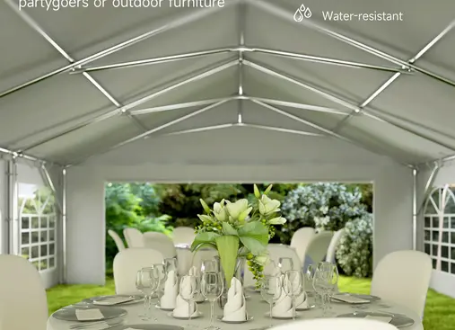 Outdoor Protection: Featuring a UPF30+ 170gsm PE canopy, this party patio canopy blocks up to 97% of harmful UV rays while being water-resistant. Keep your guests cool, comfortable and protected from the sun, no matter the weather.